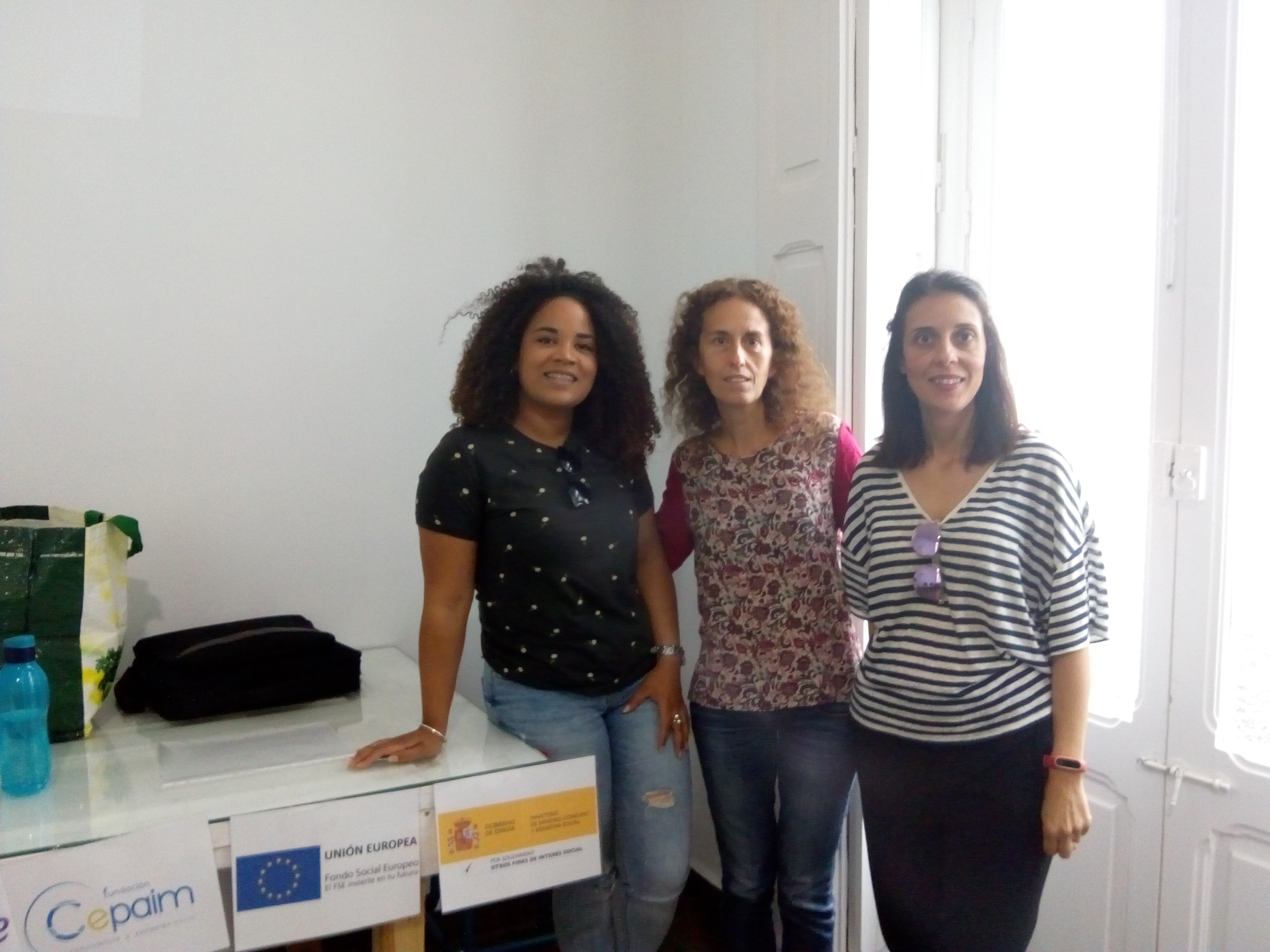 Aprovecho la oportunidad para contar qué hacemos en CEPAIM como alumna de prácticas extracurriculares e integrante del programa UNIVERGEM. En la foto, Jéxica y yo estamos junto a Azucena Caballero, técnica responsable del Programa ADELANTE. Esta iniciativa busca aumentar la integración socio-laboral de las mujeres que se encuentran en colectivos más vulnerables, a través de actuaciones que fomenten la igualdad de género y la conciliación de la vida personal y laboral, y evitando la discriminación múltiple. Entre sus objetivos específicos se encuentran mejorar la empleabilidad, prevenir y sensibilizar en violencia de género, capacitar para el desarrollo profesional en el ámbito de las TIC y Empleos Verdes, acompañar y apoyar el traslado de mujeres y de sus familias a entornos saludables, inclusivos y con oportunidades laborales así como formar a profesionales de la intervención social: Orientación laboral y TIC y Nuevas Masculinidades.