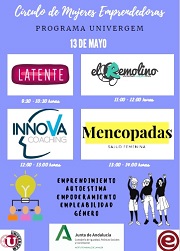 Las participantes de esta Segunda Edición del Programa UNIVERGEM podrán disfrutar de la charla-coloquio de cuatro empresas colaboradoras, empresas puestas en marcha por la iniciativa de mujeres emprendedoras. Contamos con Latente, Gestión + Acción Social; Innova Coaching Huelva, Mencopadas y El Remolino (Sociedad Cooperativa). Las alumnas del Programa podrán trabajar conceptos como empleabilidad, emprendimiento, autoestima, género y empoderamiento. Además, tendrán la posibilidad de preguntar todas las dudas que tengan acerca de la empleabilidad y el emprendimiento.
