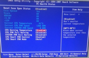 Se conecta el PC. Volvemos a entrar de nuevo en CMOS/Setup de la misma forma que en la parte número 1. Una vez en ella, llegamos de nuevo a PC Health Status” o similar (según fabricante) y se verifica el descenso de temperatura. Restando la temperatura inicial menos la temperatura final nos dara el descenso total. En nuestro caso, 41º-29º = 12ºC. La temperatura del procesador ha descendido 12ºC.