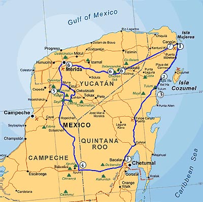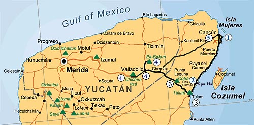 en la zona arqueológica de Xpujil y alojamiento en la ciudad de Mérida