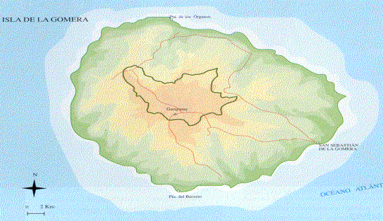 La declaración de la zona central de la isla de la Gomera como Parque Nacional el 25 de marzo de 1981 (Ley 3/81) fue por encontrarse en ella la mayor y más diversificada manifestación de Laurisilva (literalmente bosque de lauráceas) Canaria. Los diferentes ecosistemas del Parque se ubican entre los 800 y 1.500 metros sobre el nivel del mar aproximadamente. Esta es la zona de la isla que presenta un relieve menos escarpado, ya que la mayor parte del parque se asienta sobre una meseta. La superficie del mismo es de -img/.984 hectáreas, lo que supone un 10,7% de la isla, Los accesos al Parque no revisten mayor problema, dado que está surcado tanto por carreteras como por pistas forestales y senderos que comunican los diferentes municipios y caseríos de la isla. En Garajonay podemos encontrar diversos ecosistemas, desde algunos típicamente mediterráneos, hasta la Laurisilva de valle o fondo de barranco (verdadera selva subtropical). La conservación de dichos ecosistemas es de vital importancia, tanto para el mantenimiento de los recursos hídricos, de una región tan frágil en lo que a dicho bien respecta, como por preservar una vegetación, hoy relíctica, y que habitaba Europa y el norte de África hace varios millones de años. HISTORIA. Antes de la llegada de los Europeos en el s. XV la isla ya se encontraba habitada. Poco se sabe sobre el origen de los antiguos gomeros, aunque parece ser que procedían del norte de África por presentar su cultura algunas semejanzas con las de los pueblos bereberes. Su economía se basaba en la ganadería y en la recolección de los productos que ofrecía la isla, y sólo residualmente se dedicaban a la agricultura. Habitaban en cuevas o en pequeñas cabañas, y utilizaban la madera y la piedra para la fabricación de utensilios así como el barro para la cerámica. Sobre sus creencias se sabe que rendían culto, entre otros, a las montañas. Ello se pone de manifiesto por ejemplo en el Alto de Garajonay, lugar que da nombre al Parque, donde fueron encontrados restos arqueológicos ligados a la celebración de sus rituales.
