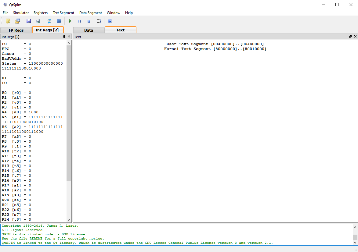 Podemos simular el código ensamblador por medio del simulador QT-SPIM.