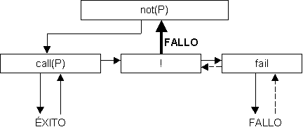 ÍNDICE]En este apartado describiremos el significado de los predicados "!" (Corte), y fail. Veremos gráficamente como actúan, y propondremos algunos ejemplos de cómo y cuándo deben utilizarse.