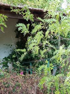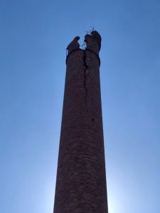 El elemento más visual de la mina, la antigua chimenea. Es uno de los elementos más característicos de la antigua actividad minera en la provincia de Huelva, observándose muchas de ellas por el territorio, junto con las cortas mineras.