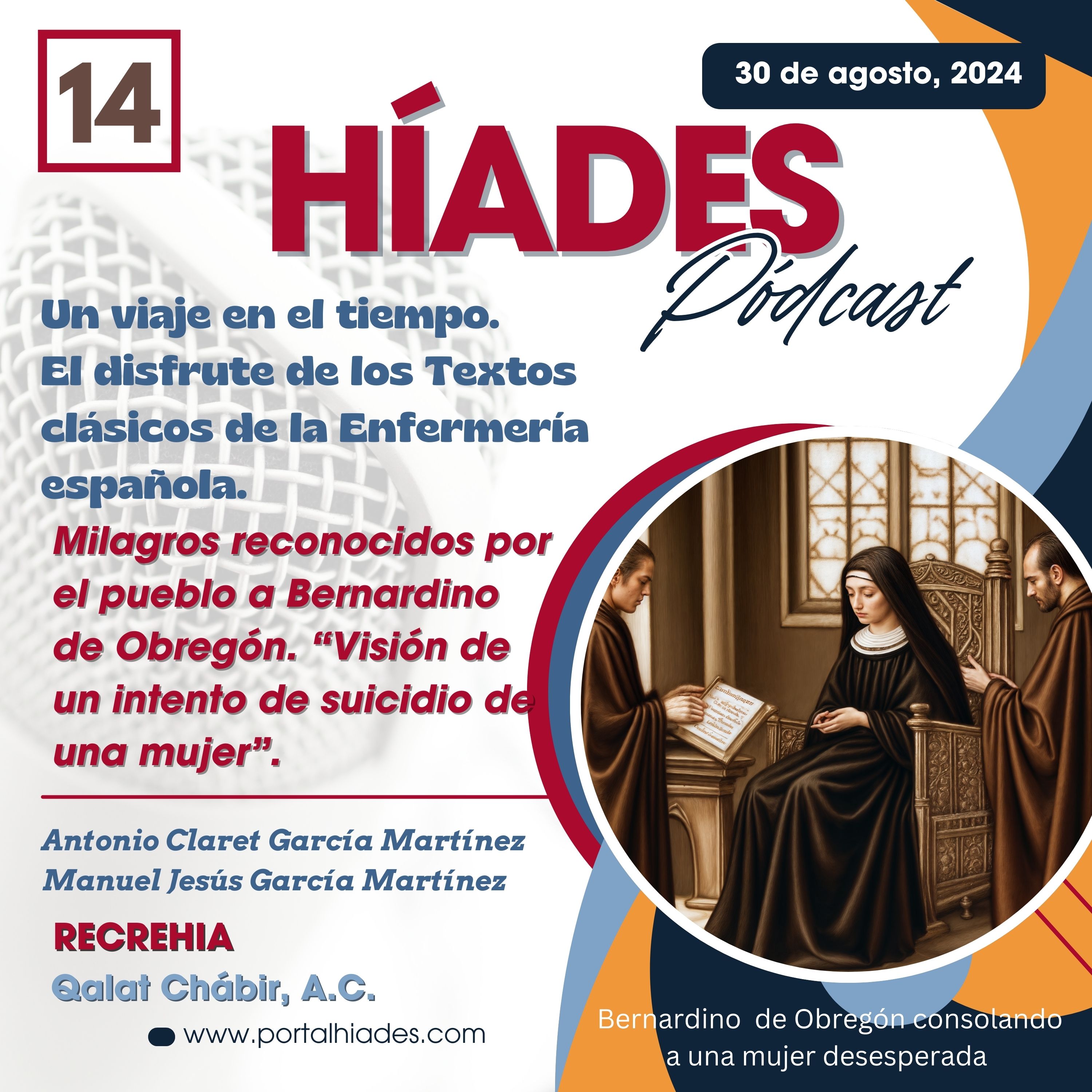 Híades Pódcast 14. Hecho milagroso ocurrido a una mujer que intentaba quitarse la vida y en visiones Bernardino de Obregón pudo ayudarla a no hacerlo. Testimonio incluido en su Causa de Beatificación.