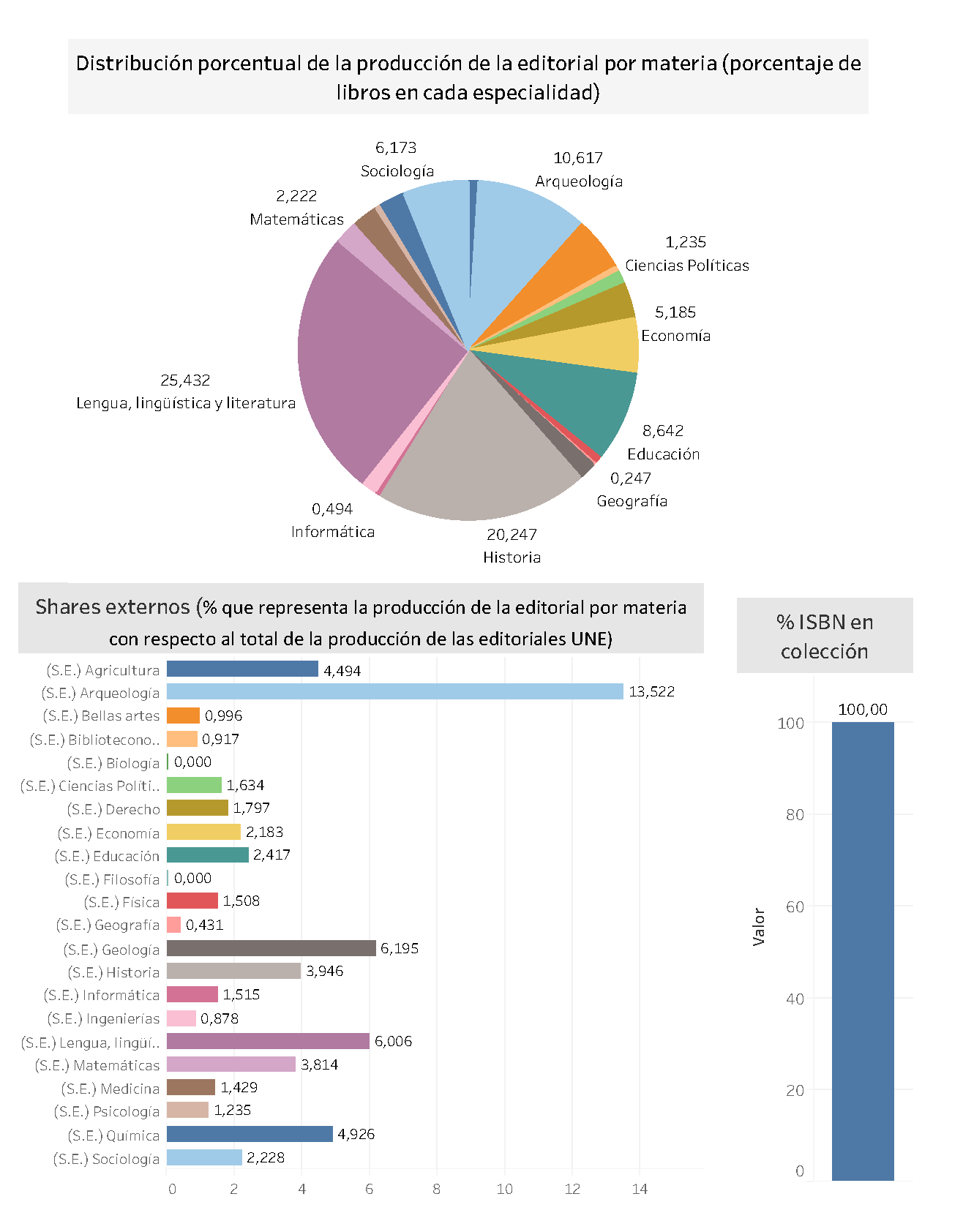 El Observatorio incluye un diagrama general con la distribución de la producción científica por áreas de conocimiento y un listado individual con el perfil de cada editorial universitaria asociada.