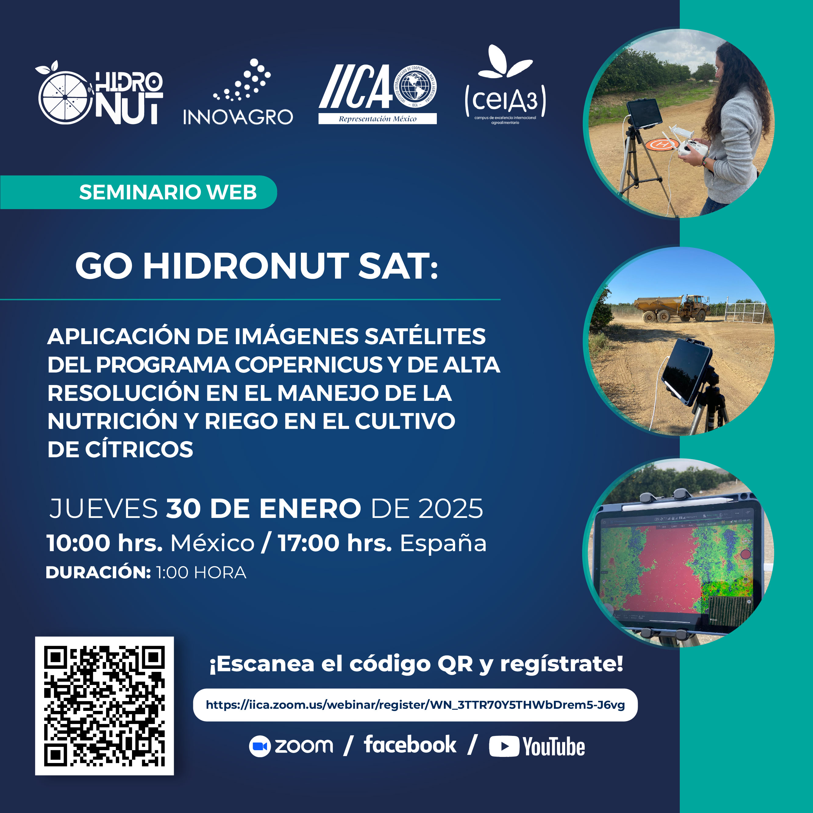 El próximo día 30 de enero 2025, de 17h a 18h, tendrá lugar el webinario sobre los avances/resultados del proyecto del grupo operativo GO HIDRONUT_SAT, que está llevando a cabo el grupo de investigación de la UHU AGR-227, como miembro de ceiA3, y la empresa García Carrión.