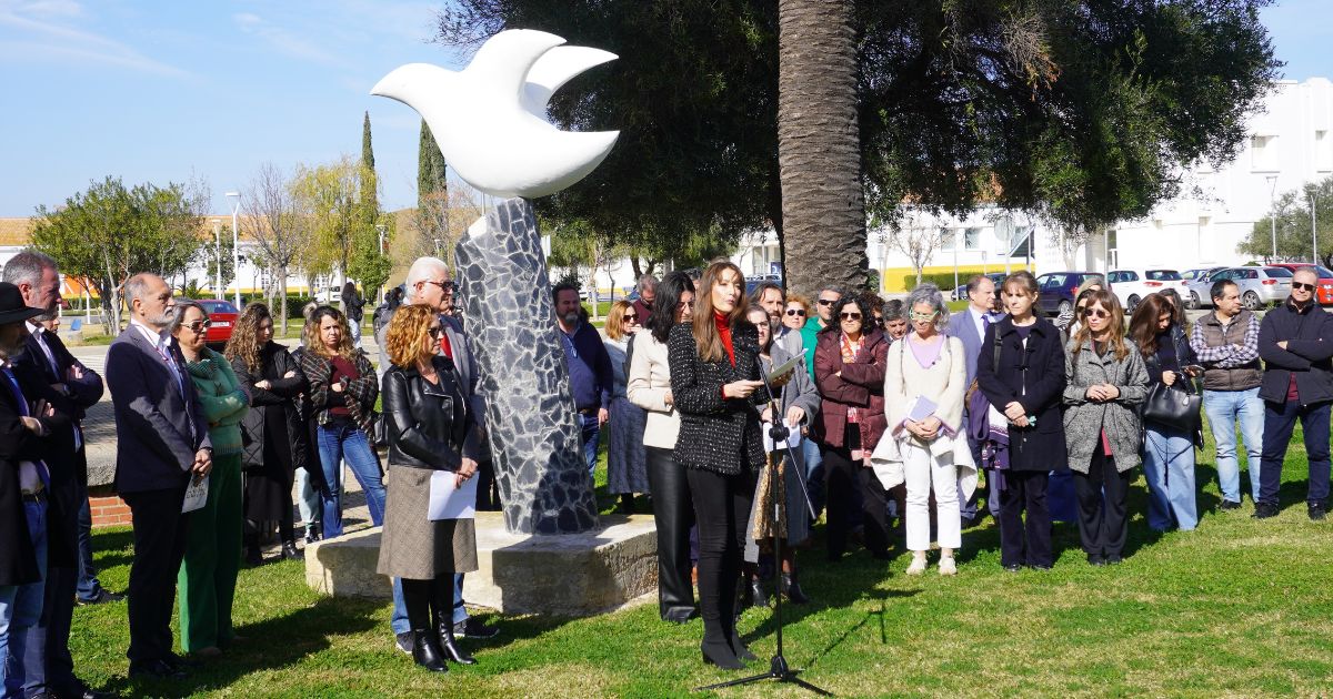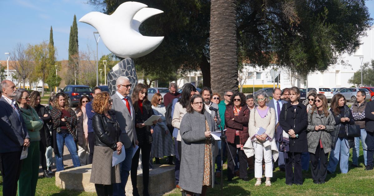 La Universidad de Huelva ha convocado a la Comunidad Universitaria hoy martes día 30 de enero, Día Escolar de la No Violencia y la Paz, a un minuto de silencio en solidaridad con todos los pueblos y naciones que se encuentran en conflicto armado. El acto ha tenido lugar en la Escultura de la Paloma de la Paz, situada en el Campus de El Carmen y han estado presentes la rectora de la Universidad de Huelva, María Antonia Peña, la directora de la Unidad para la Igualdad, Cinta Martos, el presidente de la AIQBE, José Luis Menéndez López, la secretaria del Consejo Social de la UHU, Susana Duque, y miembros de la Comunidad Universitaria.