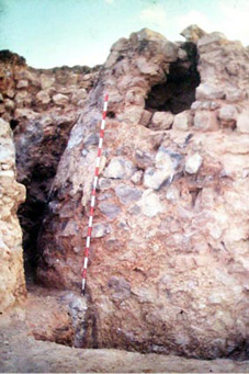 Figura 4.- Horno abovedado sobre una plataforma cuadrangular delimitada por adobes.