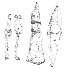 Una argolla de hierro y partes de otras que podríamos asociar a bocados de caballo, pero que por estar tan generalizada su utilidad y no haber aparecido en el depósito otras partes de dicho utillaje, citamos aquí su posible uso con las suficientes reservas.