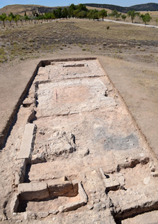 Figura 7. La necrópolis noroccidental de Segobriga. Vista general desde el O del área cementerial excavada entre los años 2006-2009 bajo el circo. En primer término, el denominado ustrinum colectivo.