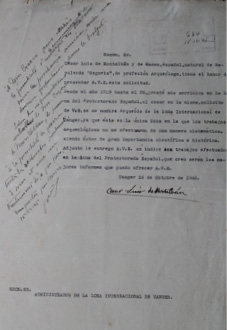 Fig. 1. Montalbán señala su fecha de nacimiento en 1890 en documento sin fechar (pero de 1945) dirigido al Ministerio de Gobernación de la República en el exilio donde señala su pertenencia a la administración de la Alta Comisaría desde 1919 como funcionario, habiendo ganado su plaza de arqueólogo por concurso.