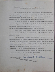 Fig. 7 Montalbán en Tánger. Correspondencia con la administración internacional de la ciudad solicitando trabajo (1945) [A.M.]