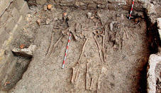 Tras la retirada, por medios mecánicos, de los estratos superficiales de acumulación por abandono, se puso al descubierto el lateral sur de “la huesera”, y un nivel de uso fechable, a priori, en el siglo XVII, en el que eran claramente visibles diversas fosas de enterramiento (figura 3).