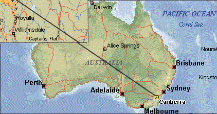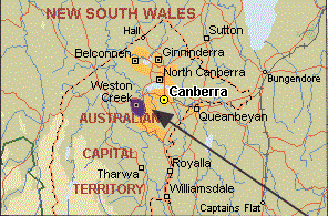 Sydney Ubicada en el Territorio de la Capital Australiana, al sur de Nueva Gales del Sur, consta de 325 400 habitantes, es la capital política y administrativa de Australia. Fue creada en un movimiento único, construida planificada a principios del siglo XX : es una ciudad abierta, redonda y adentrada en el interior del país. Aquí los urbanistas han inventado el concepto de ciudad jardin. En 1960, Griffin dispuso alrededor de un lago artificial, la " ciudad jardin absoluta " con sus ministerios, sus agencias gubernamentales y administrativas, sus embajadas, sus universidades y museos, sus galerías comerciales y sus zonas peatonales diseminadas en parques y jardines. Su centro está dominado por una gigantesca pirámide aplanada recubierta de césped, sede del Parlamento (1988) en la cumbre de la cual se encuentra esta bandera.
