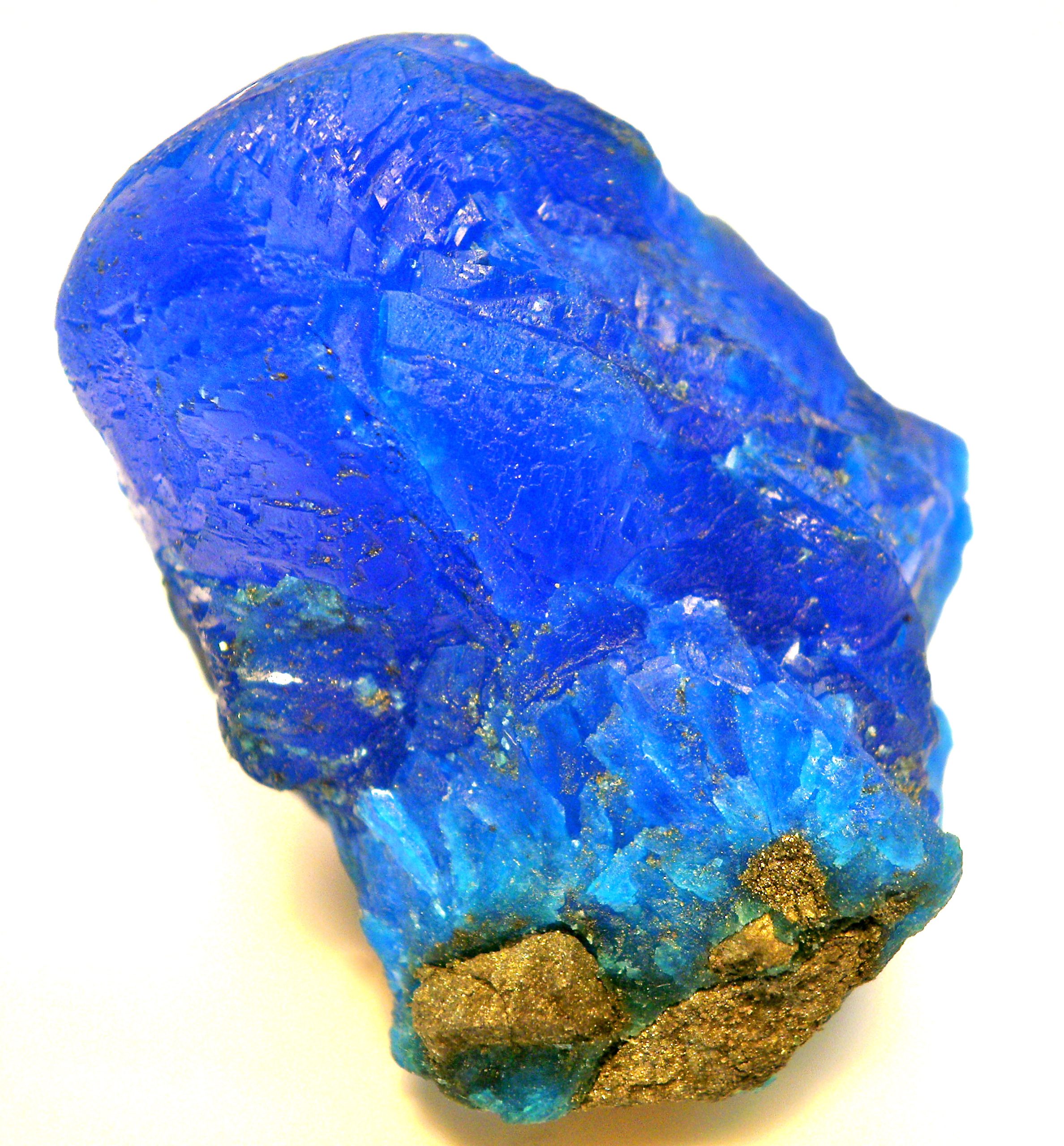 Descripción: Cristales de color azul intenso con inclusiones de voltaíta.