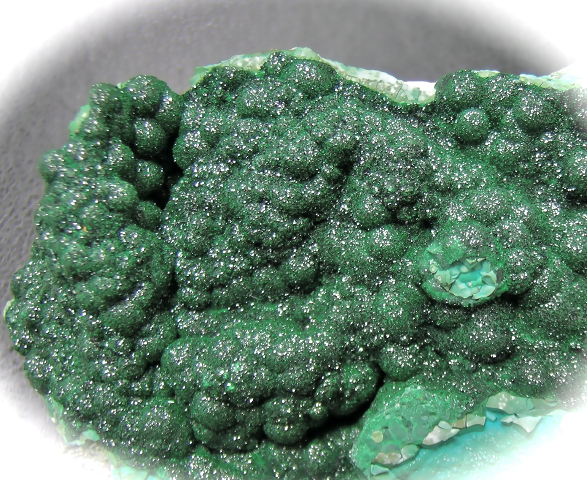 Descripción: Crecimiento botrioidal sobre crisocola.