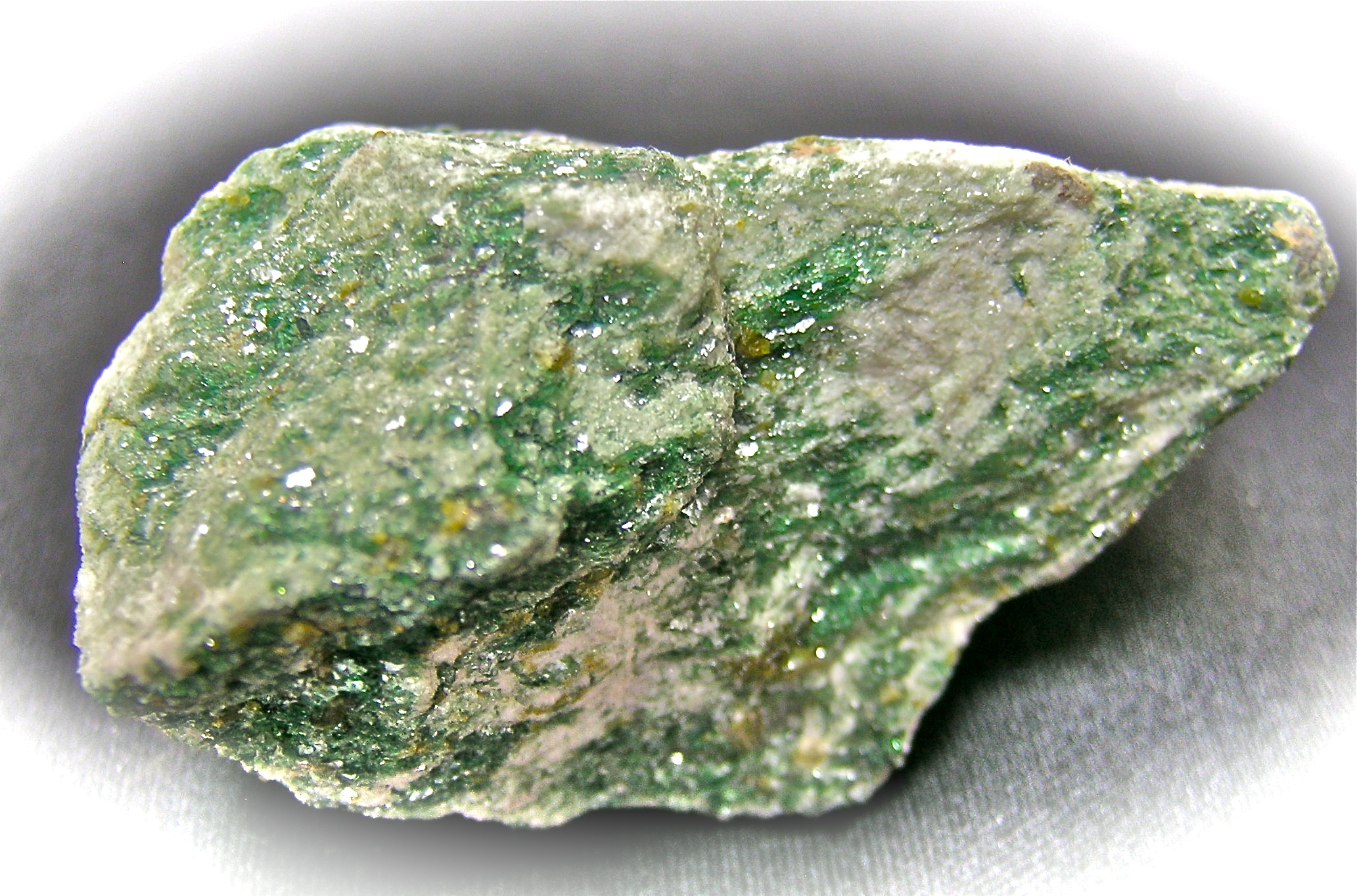 Descripción: var. Fuchhsita. Agregado laminar de moscovita verdosa