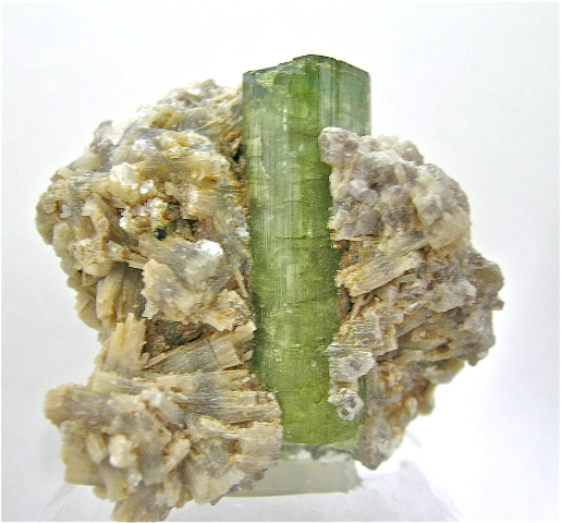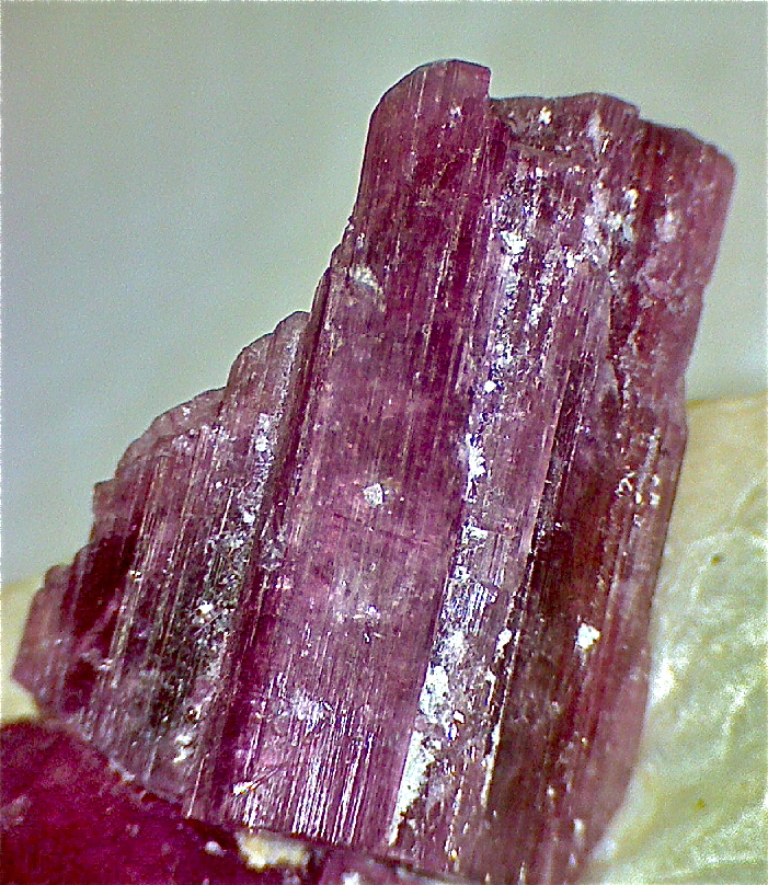 Descripción: Monocristal prismático de turmalina rosa con caras estriadas
