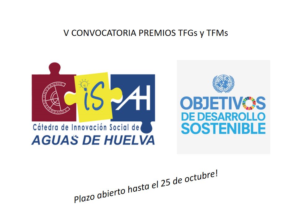 Se abre el plazo para participar en la V Convocatoria de los Premios a Trabajos Fin de Grado (TFG) y Trabajos Fin de Máster (TFM), convocados por la Cátedra de Innovación Social Aguas de Huelva. Este certamen propone a los estudiantes que presenten sus TFG o TFM que estén relacionados con los objetivos de desarrollo sostenible y las dos líneas principales de actuación de la Cátedra: