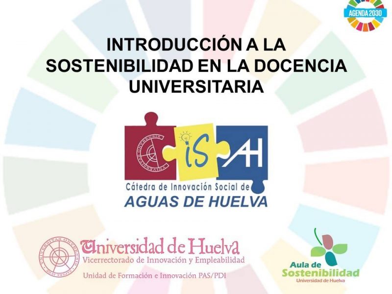 La Cátedra Aguas de Huelva promueve una nueva edición de este curso, dirigido al personal docente e investigador de la Universidad de Huelva, que se enmarca en Plan de Formación de la Universidad de Huelva, concretamente en el eje orientado a la ética profesional y responsabilidad social. El curso se divide en cuatro grandes apartados: 1) Introducción sobre la Agenda 2030 (impartido por Dolores Muñoz) 2) Aspectos tecnológicos de la sostenibilidad (prof. Francisco Navarro), 3) Aspectos biológicos de la sostenibilidad (prof. Adolfo Muñoz) y 4) Aspectos sociales de la sostenibilidad (profa. Esperanza Torrico).