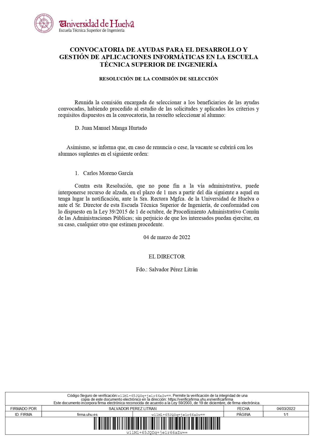 Propuesta de concesión de los premios extraordinarios al mejor expediente del curso 2020/21.