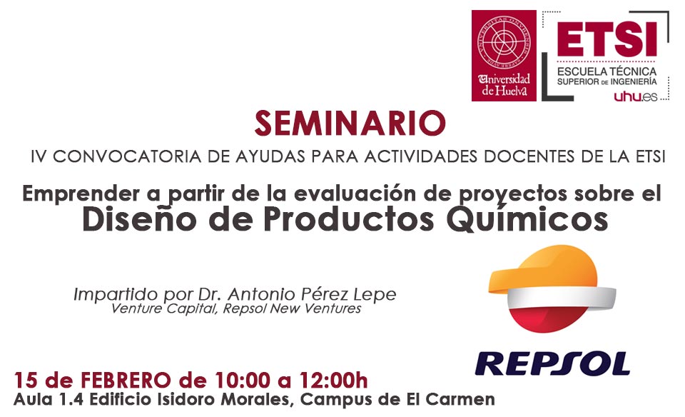 “VI CONVOCATORIA de Ayudas para Actividades Docentes de la ETSI” Seminario: “Emprender a partir de la evaluación de proyectos sobre el Diseño de Productos Químicos”
