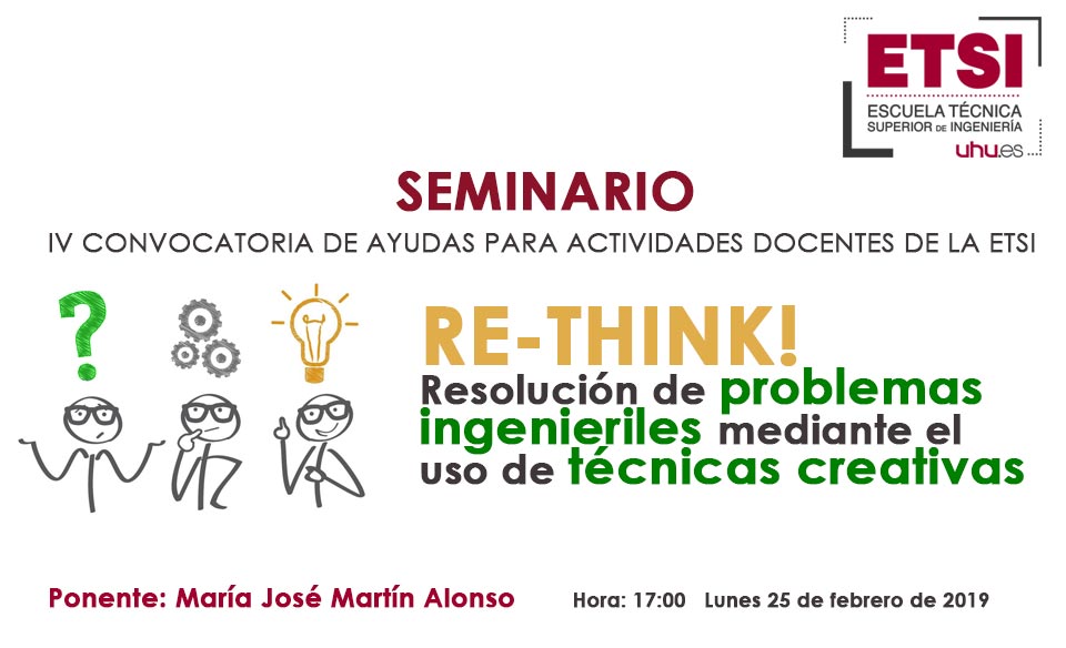 La Universidad a través de la “IV Convocatoria de Ayudas para Actividades Docentes” organiza RE-THINK! Un seminario sobre la resolución de problemas ingenieriles mediante el uso de técnicas creativas.