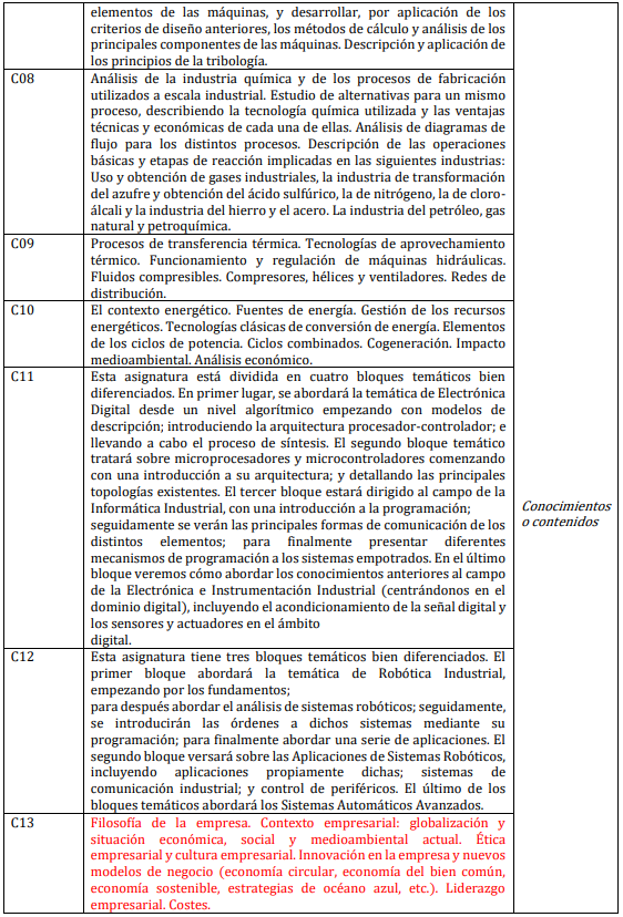 Conocimientos o contenidos, Competencias y Habilidades o Destrezas