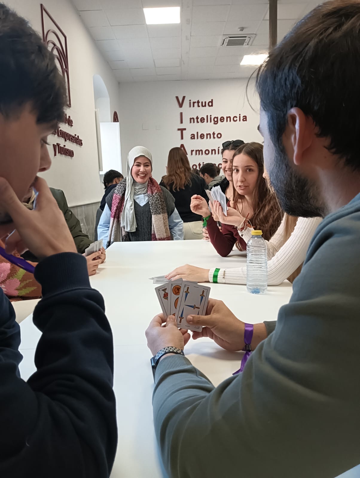 La Sala VITAM volvió a llenarse de energía esta mañana gracias al concurso “Cartas sobre la Mesa”, una actividad organizada por las alumnas Zayneb Et Tamari Khajna, Nisrine Touhami, Natalia Gómez Lara y Alejandra Moreno González, dentro del Taller de Habilidades para el Liderazgo Eficaz.
