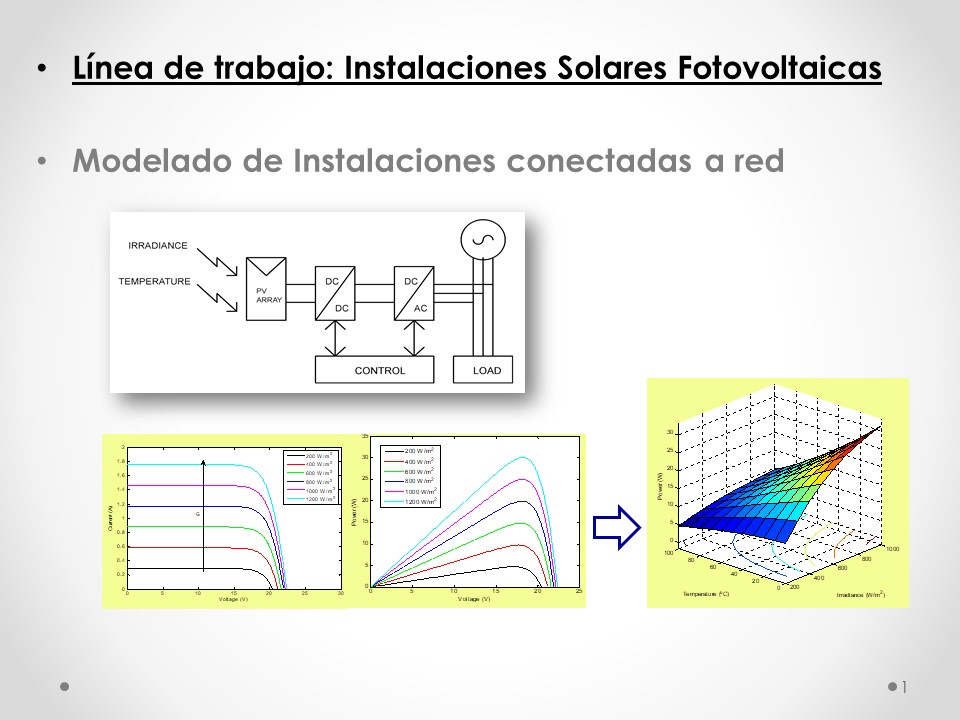 – Modelado de Instalaciones fotovoltaicas conectadas a red (esto permite prever el comportamiento del sistema antes de su instalación).