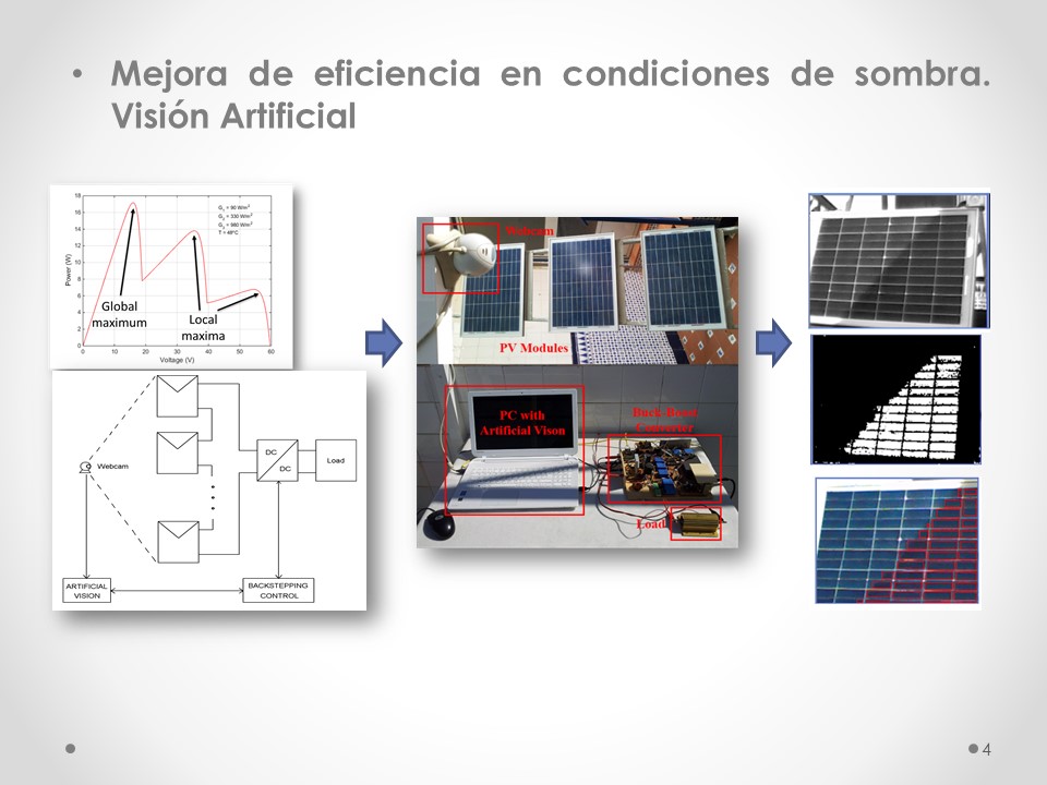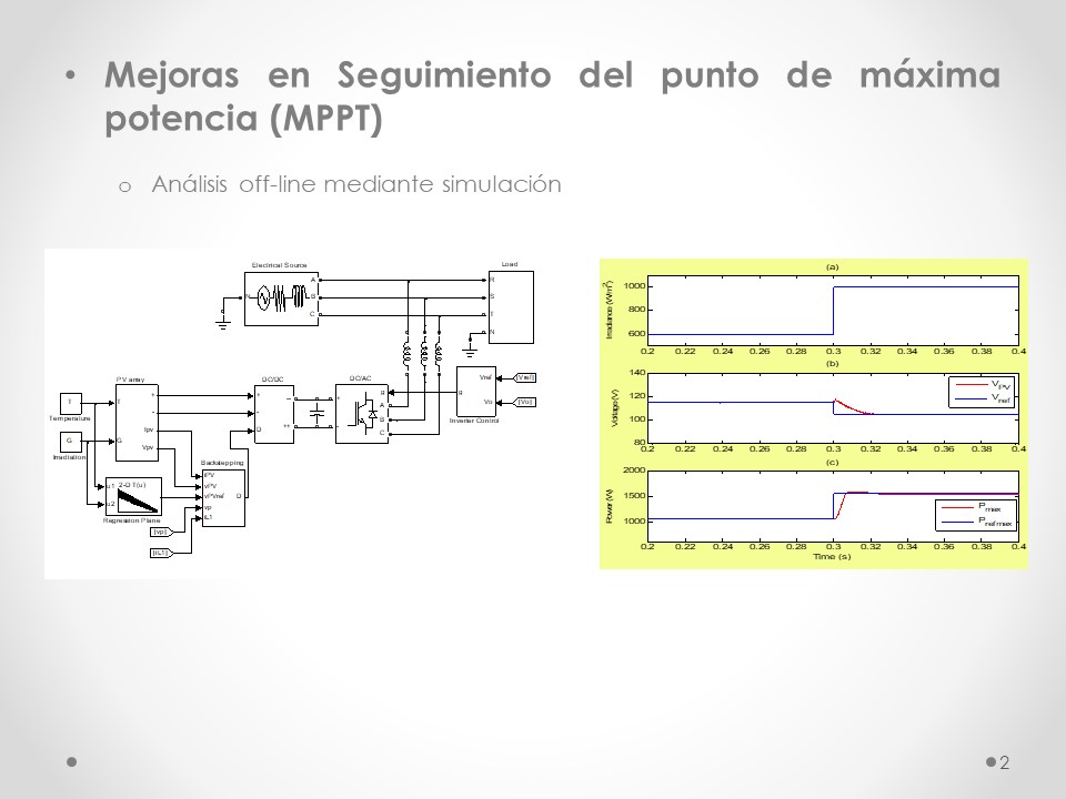 – Mejoras en Seguimiento del punto de máxima potencia (MPPT). Se han propuesto distintos controles de los convertidores de potencia que mejoran la extracción de potencia.
