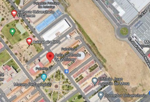 Situada en un espacio que forma parte del Paseo de Las Letras y de Las Ciencias del Campus del Carmen, concretamente en el espacio que se ubica cerca del depósito de aguas y una zona