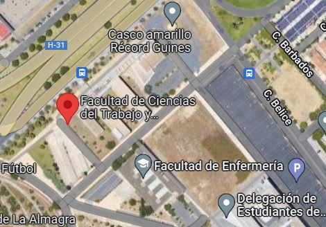 En el límite norte del Campus de El Carmen de la Universidad de Huelva, ocupando los terrenos pertenecientes a los antiguos cuarteles del Regimiento de Infantería Granada 34 se encuentra un edificio de seis plantas al que se adosan cuatro volúmenes de distintas y menores alturas creando una estructura de peine en los que se intercalan espacios abiertos. El vidrio y el hormigón configuran la estructura principal con forma de prisma donde se sitúan un amplio hall, conserjería y secretaría entre otras dependencias. En las plantas superiores se encuentran el decanato, salas de reunión, aula de grados y despachos docentes. Los revestimientos son paneles prefabricados de hormigón y chapa grecada, muros ventilados de piedra natural y celosías de lamas de aluminio o cerámicas que filtran la luz.