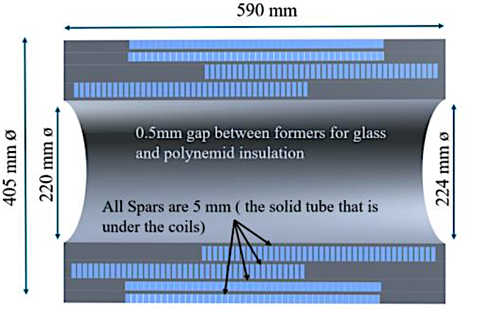 Cross section of the tapered MAGDEM dipole and quadrupole coil formers.