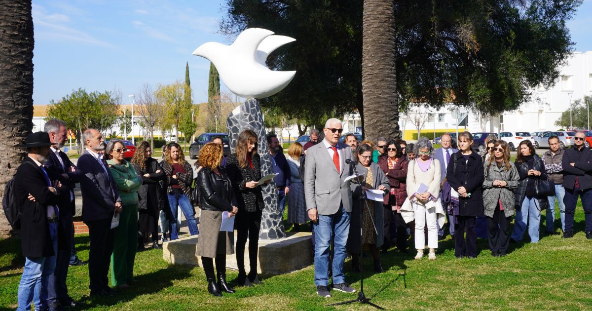 La Universidad de Huelva ha convocado a la Comunidad Universitaria hoy martes día 30 de enero, Día Escolar de la No Violencia y la Paz, a un minuto de silencio en solidaridad con todos los pueblos y naciones que se encuentran en conflicto armado. El acto ha tenido lugar en la Escultura de la Paloma de la Paz, situada en el Campus de El Carmen y han estado presentes la rectora de la Universidad de Huelva, María Antonia Peña, la directora de la Unidad para la Igualdad, Cinta Martos, el presidente de la AIQBE, José Luis Menéndez López, la secretaria del Consejo Social de la UHU, Susana Duque, y miembros de la Comunidad Universitaria.