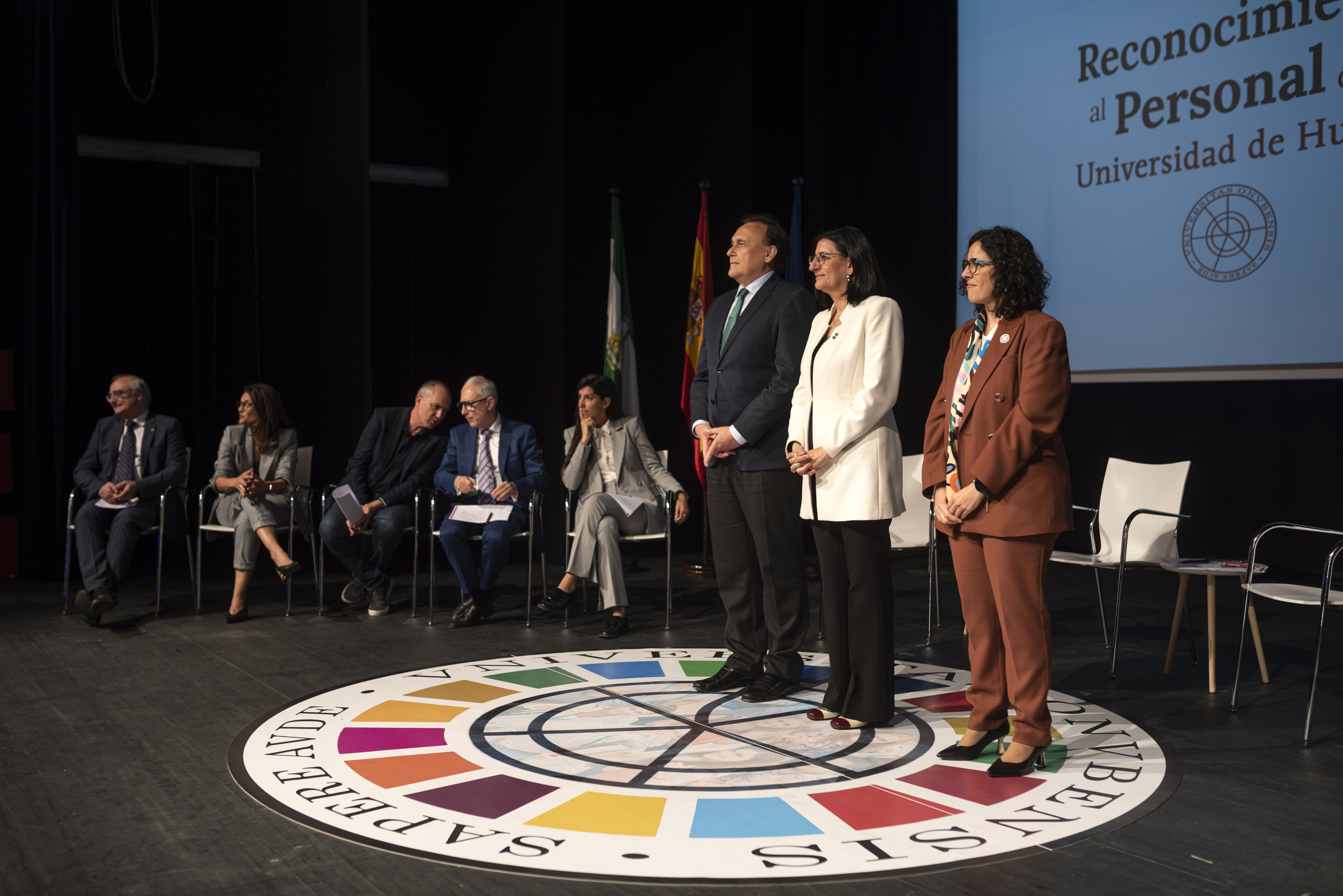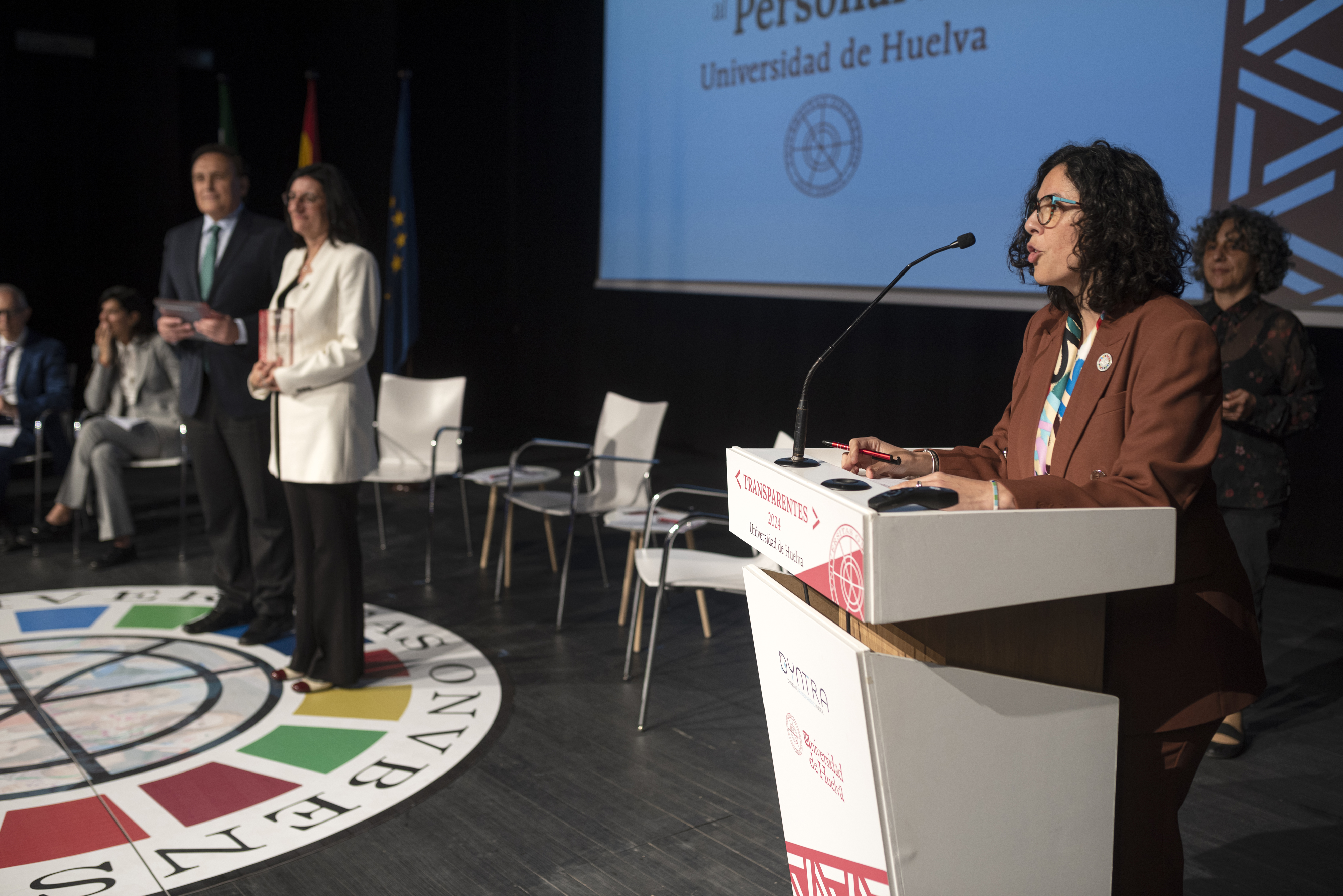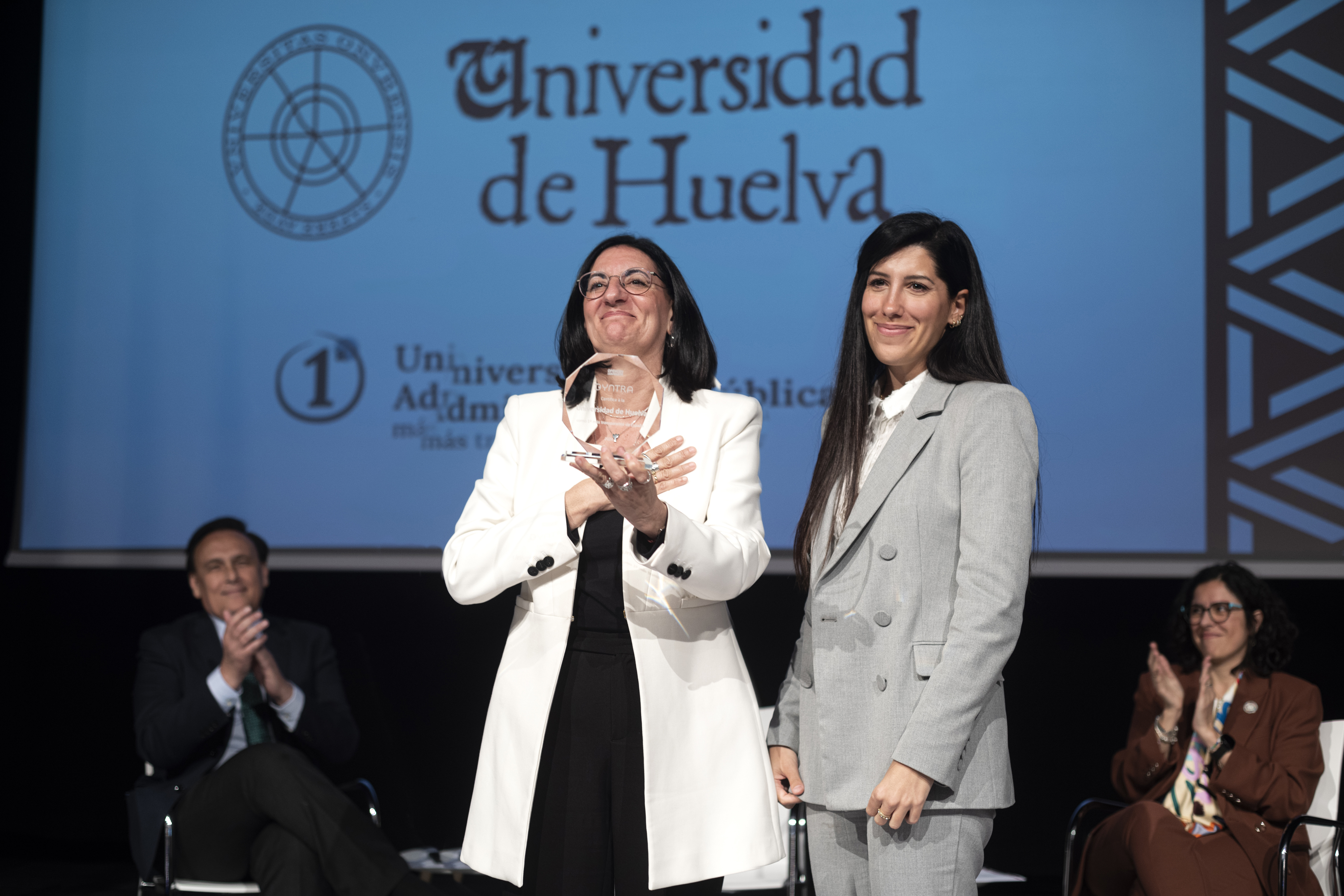 La plataforma Dyntra ha entregado a la Onubense la certificación en un acto público celebrado en el Auditorio de la Universidad.