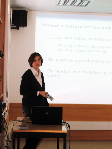 Fátima Martínez, subproyecto HYDROPON, presentó las “Aplicaciones foliares de hierro en cultivo sin suelo de fresa CV. Splendor”, mostrando técnicas novedosas de cultivo de la fresa.