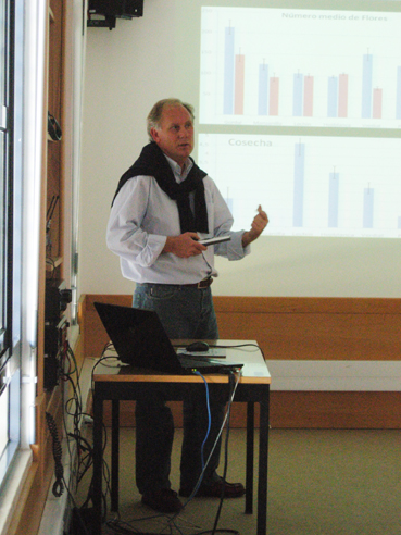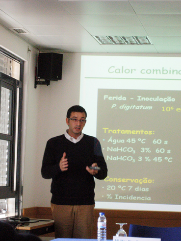 Miguel Salazar, del subproyecto TECNOMED, habló en su presentación “Pós-colheita en frutos mediterrânicos. Técnicas Alternativas controlo de penicillium en citrinos” de la parte dedicada a los productos cítricos de este subproyecto. Se presentaron los diferentes métodos empleados y las diferentes técnicas previstas, como el empleo del ozono, el calor, el bicarbonato sódico, el quitosano…
