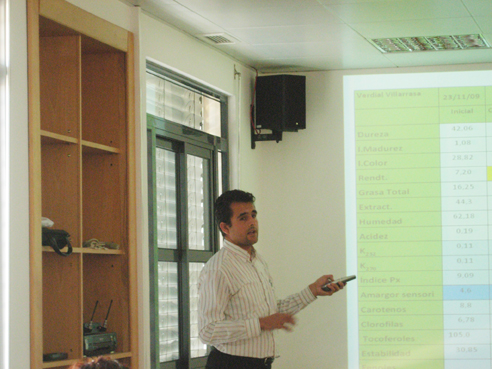 Carlos Weiland, Investigador Principal de este mismo subproyecto, se centró en la investigación de la aceituna con su sesión “Modificación de la maduración de la aceituna de molino, mediante la regulación de la atmósfera de conservación”. Esta presentación se centró en las técnicas empleadas para ampliar el periodo de recolección, adelantando la cosecha o si la cosecha es tardía estudiar si se puede conservar en cámaras frigoríficas, y presentó los datos del primer año de investigación, ya que se encuentran en el segundo periodo de cosecha y recolección.