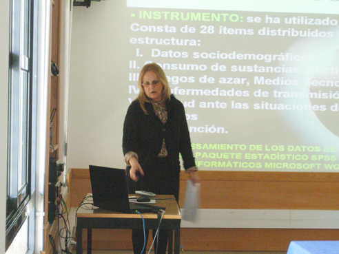 Seguidamente Carmen Azaustre Lorenzo (UHU), miembro del subproyecto VIVE, con la presentación “Resultado global del estudio sobre riesgos para la salud en los estudiantes universitarios de Huelva, Algarve y Beja”, presentó resultados más concretos y avanzados que los mostrados en el anterior Workshops, en relación al consumo de sustancias adictivas, los juegos de azar, medios tecnológicos e Internet, y las enfermedades de transmisión sexual.