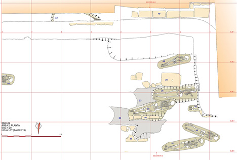 Tras la retirada, por medios mecánicos, de los estratos superficiales de acumulación por abandono, se puso al descubierto el lateral sur de “la huesera”, y un nivel de uso fechable, a priori, en el siglo XVII, en el que eran claramente visibles diversas fosas de enterramiento (figura 3).