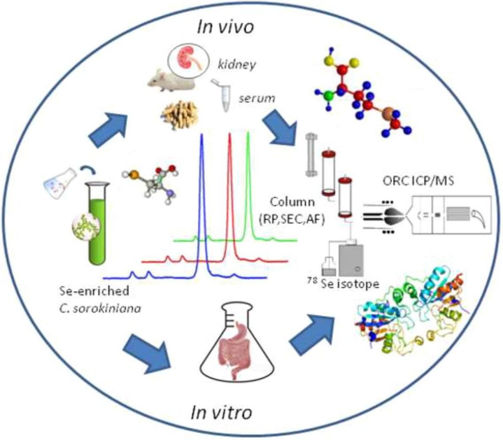 En un primer momento, se observó con qué tipo de compuesto y en qué concentración Chlorella es más eficiente en su labor transformadora de selenio accesible por el organismo. Pero conocer qué cantidad o qué forma adopta en los alimentos que se ingieren no es suficiente para conocer cómo se incorpora al organismo.