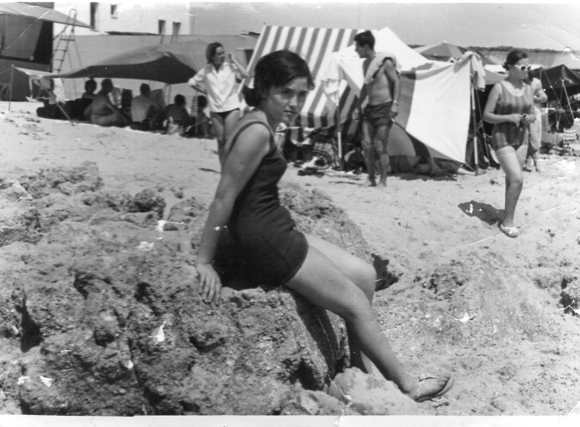 Forma parte de un conjunto de tres instantáneas que hemos titulado: Día de playa en el verano de 1966, realizadas en su día por Manuel Lazo Cejudo, un fotógrafo aficionado en la España de finales de la autarquía. Completan la serie temporal de fotografías (1951-1966) de un día de playa de la familia y amigos del autor, vecinos todos de Valverde del Camino, pueblo enclavado en la comarca interior y minera del Andévalo.