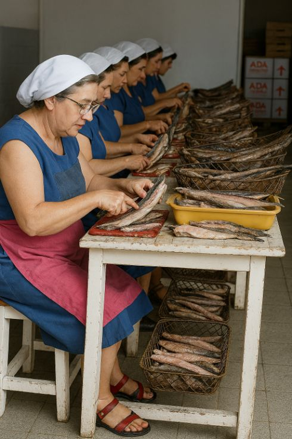 Muchas de las mujeres de clase obrera de Ayamonte trabajaron alguna vez en su vida en estas fábricas, que fueron uno de los pocos ámbitos relacionados con la actividad pesquera donde han tenido cabida las mujeres.
