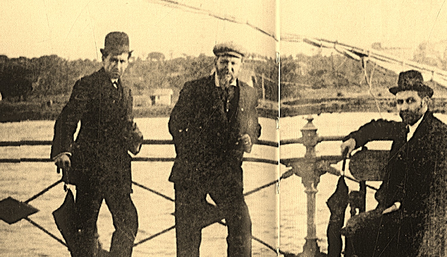 En la foto, Juan Ramón Jiménez (derecha) aparece junto a Joaquín Sorolla (centro) en un lugar emblemático como es el muelle de La Rábida (Palos de la Frontera, Huelva), acompañados por Tomás Murillo (izquierda), discípulo del pintor valenciano.